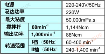 两个速度档位分别用于高粘度物料的搅拌和强烈搅拌,采用穿透式搅拌桨。